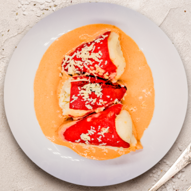 Deliciosos pimientos rellenos con un sabroso bacalao mezclado con nata líquida y cebolla que aportan cremosidad y dulzura. El pimiento piquillo añade un sabor ahumado y característico, mientras el queso rallado gratinado corona el plato con textura y sabor.