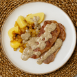 Este plato es pura indulgencia. El secreto ibérico, tierno y jugoso, se cocina con una cremosa salsa de trufa que realza su sabor con matices profundos y envolventes. La mezcla de setas cultivadas, como shiitake y champiñón, junto a la cebolla y el vino blanco, aporta un equilibrio perfecto entre lo rústico y lo sofisticado.